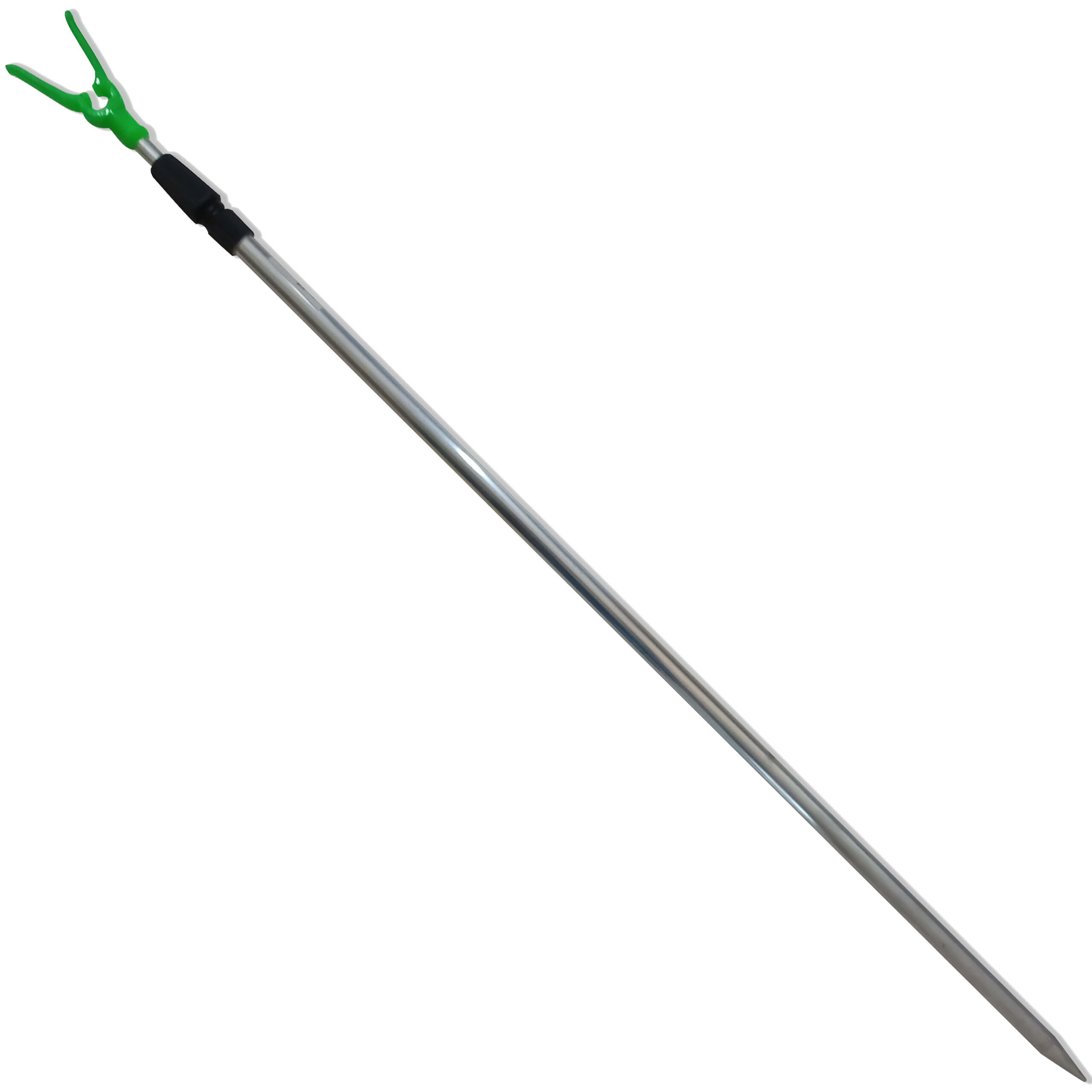 CORPO: Dois bastões de alumínio unidos por uma rosca de plástico. Uma das extremidades é pontiaguda para fixação no solo, a outra possui um encaixe para a vara.